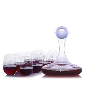 Personalized Wine Decanter Sets or Engraved Wine Carafe Sets are awesome gifts. A monogram on a crystal decanter and glasses is a classic. Add an engraved logo and make a one of a kind set Choose from our quality line of crystal wine decanters and crystal wine glasses. Have a monogram, special message, logo or image engraved to create a beautiful presentation. By adding our Walnut Wood Tray you have now created the ultimate personalized wine decanter gift.